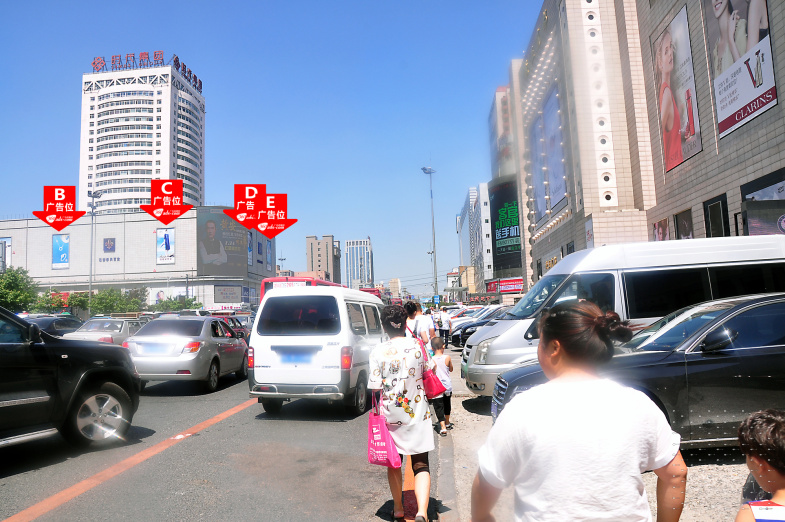 工农大路与红旗街交汇处巴黎春天百货墙面大牌